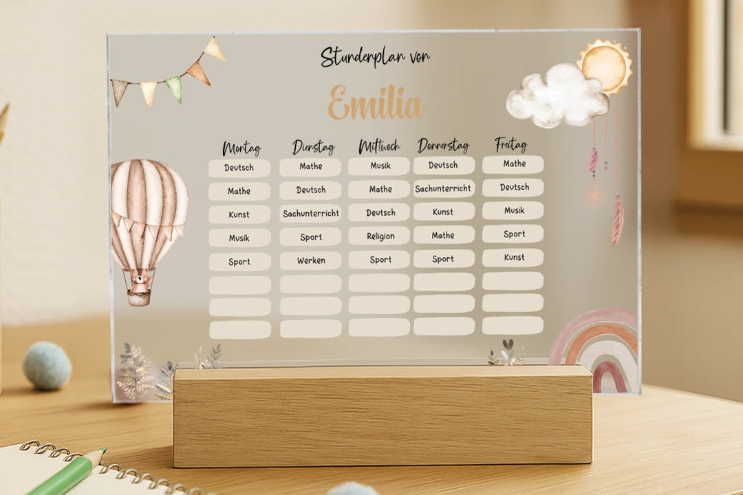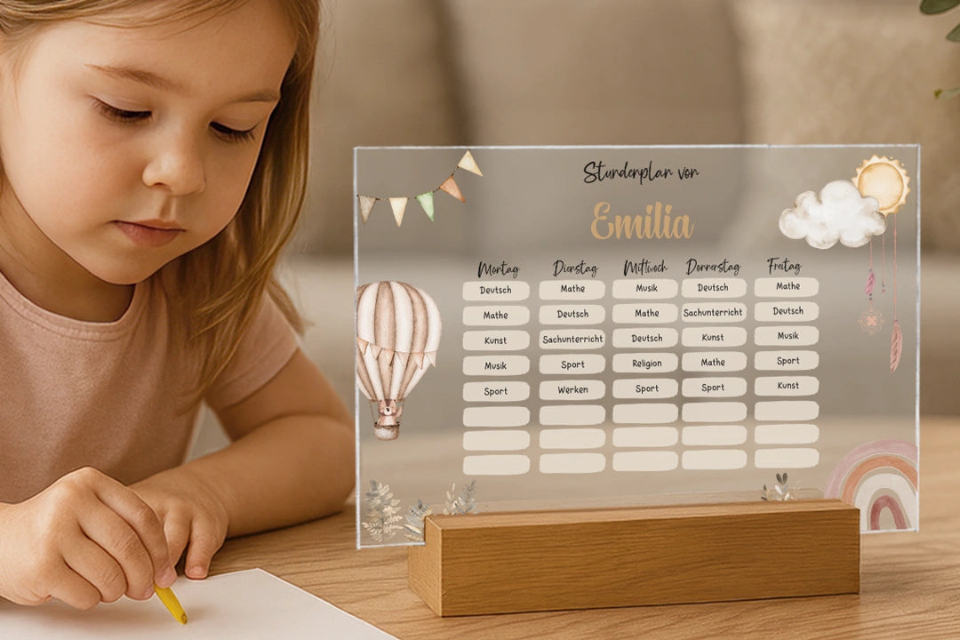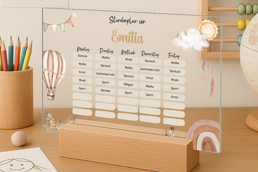 Individueller Schulplan aus Acryl – für einen bunten Start in den Schulalltag.