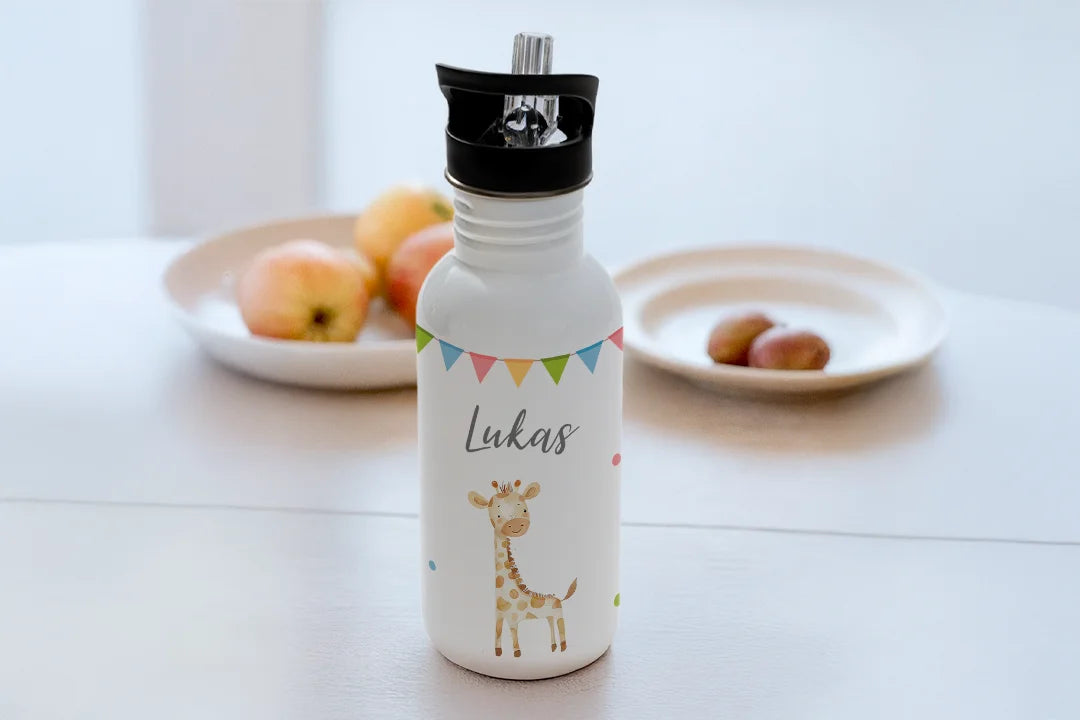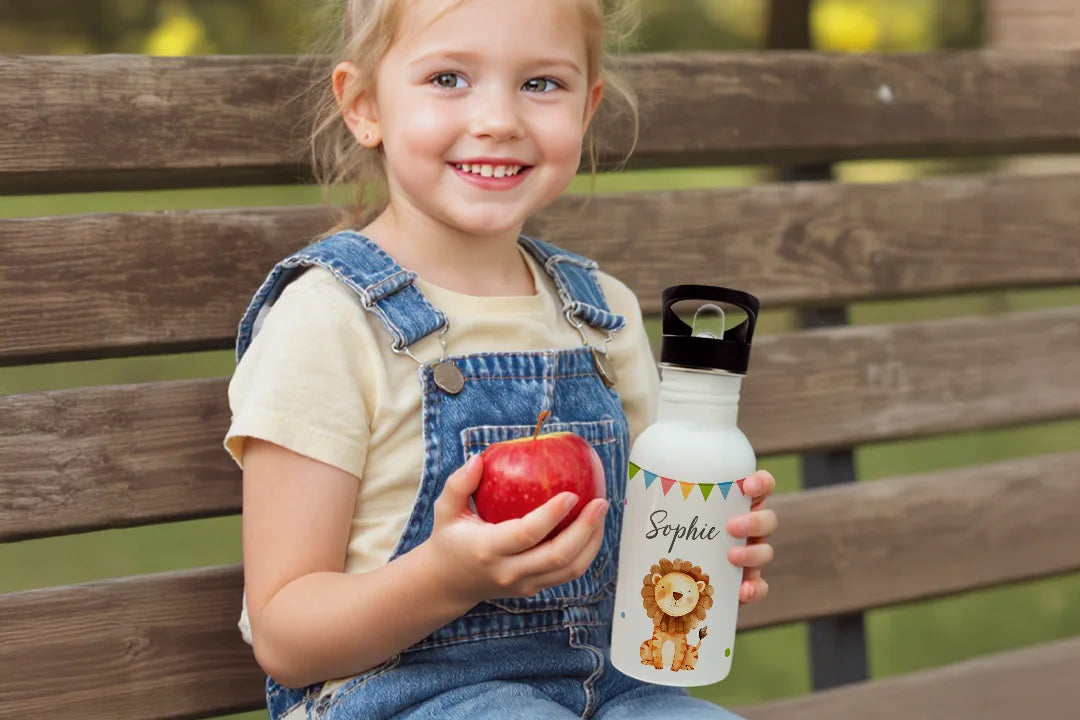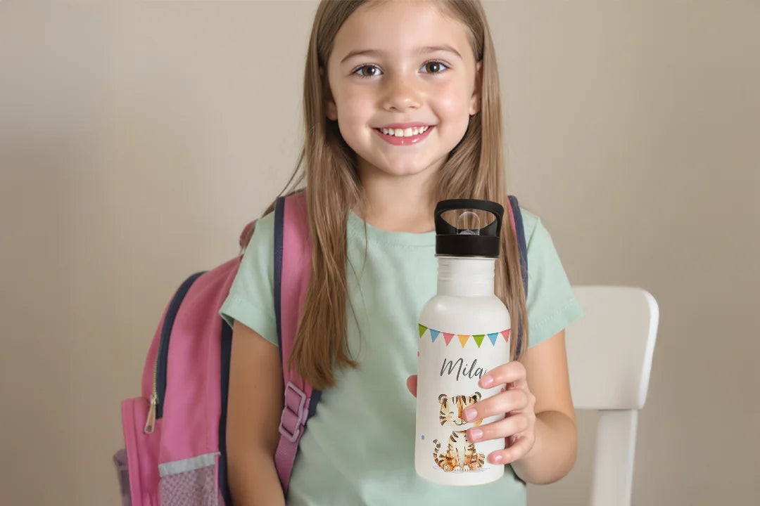 Mit Namen & Tiermotiv – doppelwandige Edelstahlflasche für Schule, Ausflug & Kita.