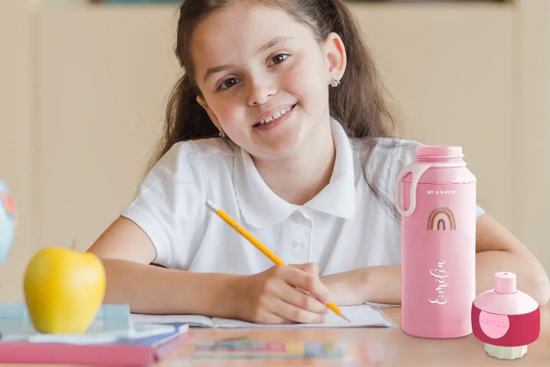 Fröhliche Trinkflasche mit Namen & Regenbogen – perfekt für Schule, Kita & unterwegs.