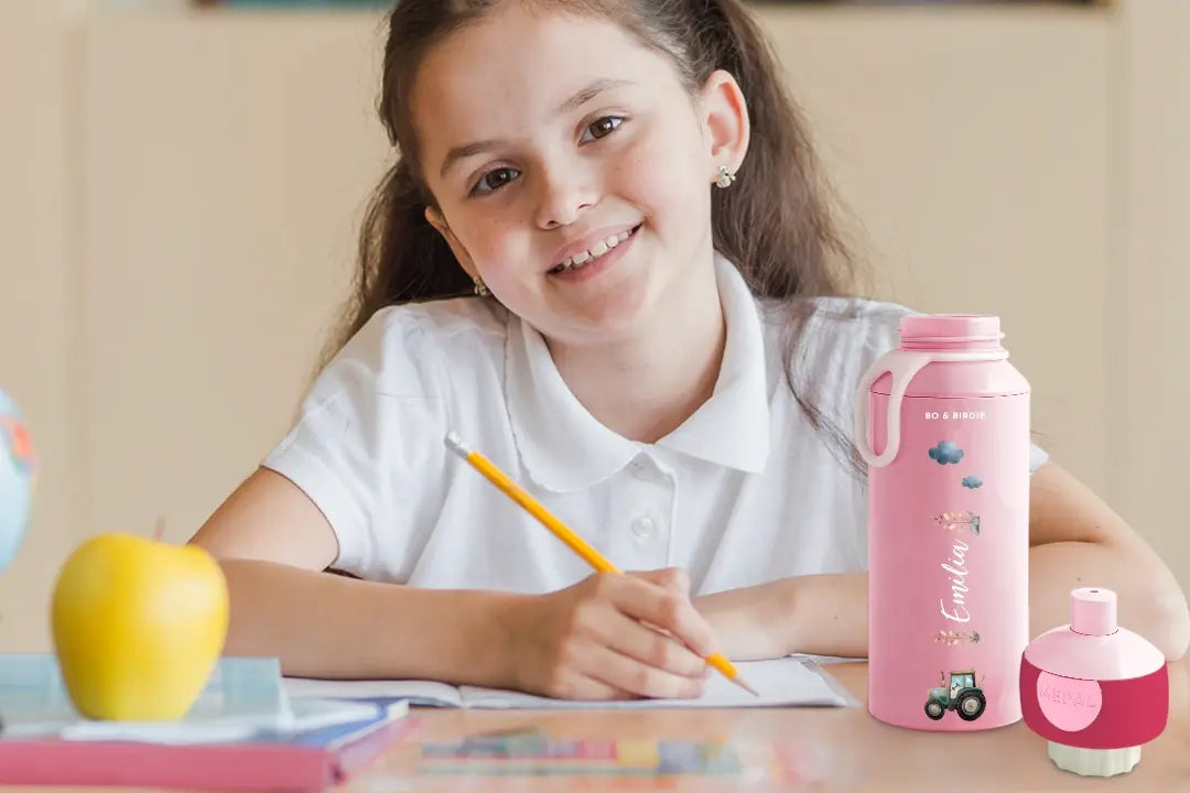 Robuste Kinderflasche mit Namen & Traktor-Motiv – ideal für kleine Abenteurer.
