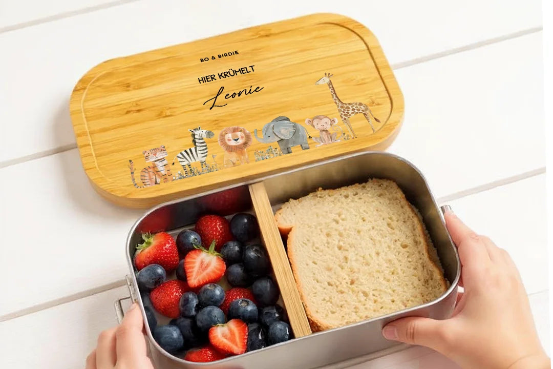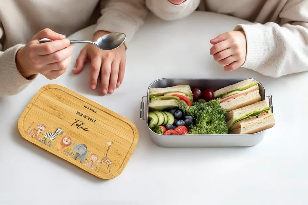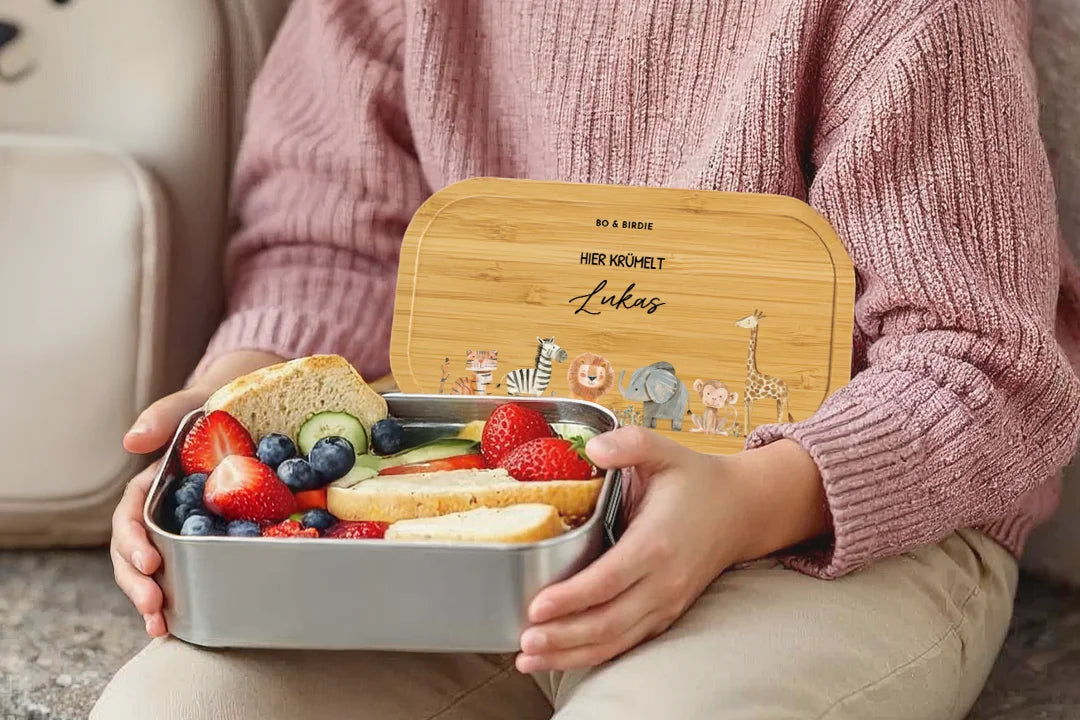 Mit Namen & Tiermotiv – eine robuste Lunchbox für Kita, Schule & unterwegs.