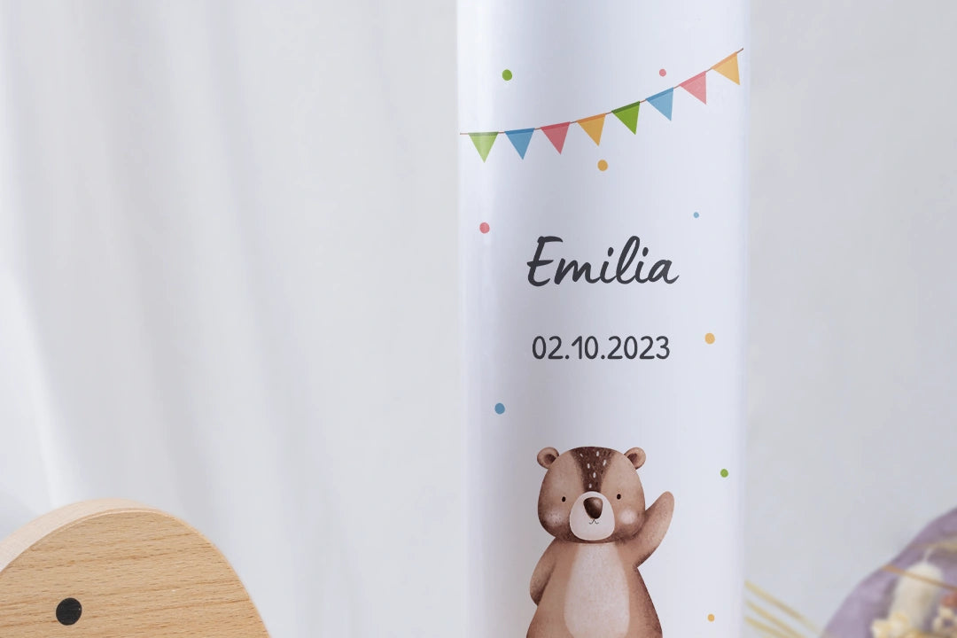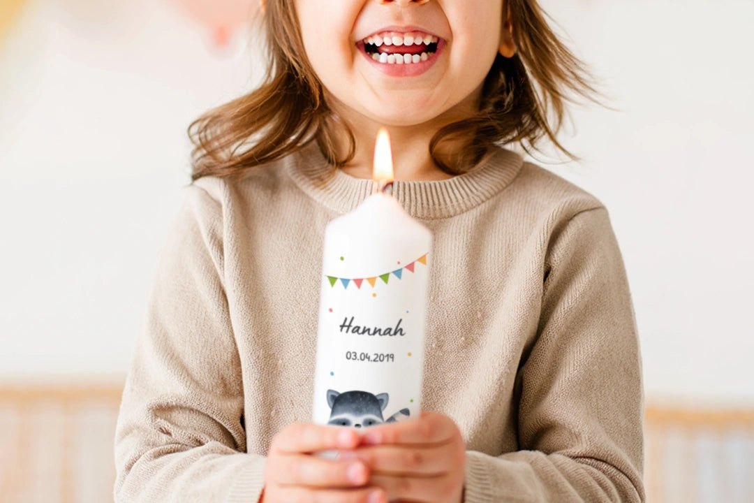 Liebevoll gestaltete Geburtstagskerze mit Tiermotiv und Namen – ein ganz besonderes Geschenk