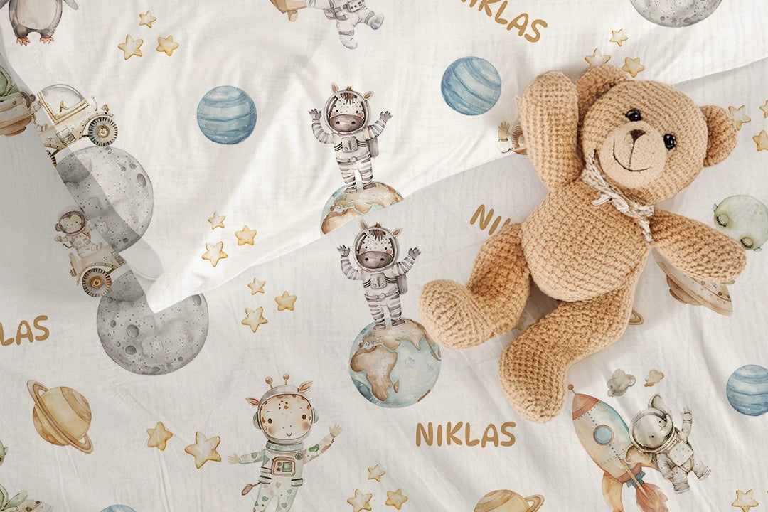 Abenteuerliche Safari im Weltall – personalisierte Bettwäsche für kleine Astronauten