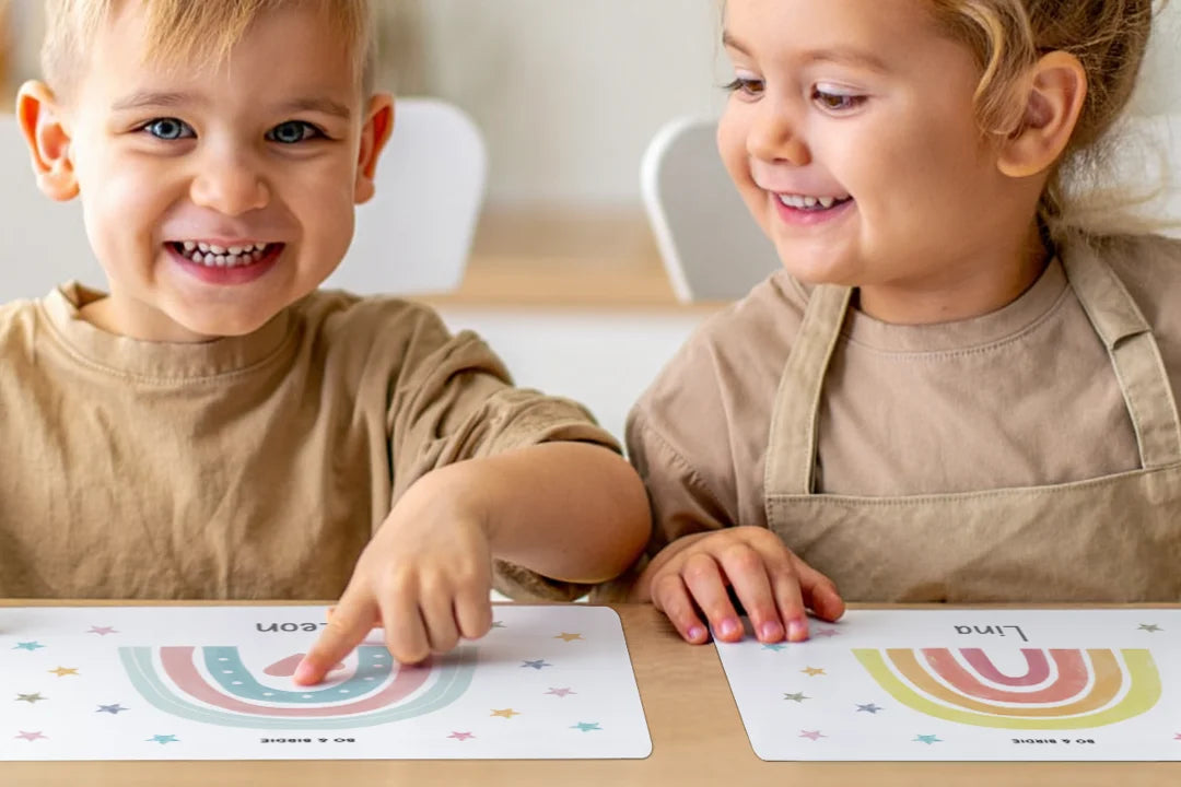 Farbenfroher Platz für dein Kind – mit Wunschnamen & kunterbunten Motiven.