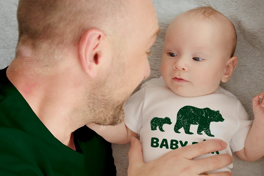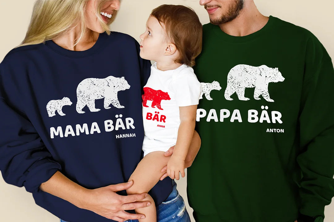Der Babybody wird aus 100 % weicher Baumwolle gefertigt, der Sweater für Papa besteht aus 80 % Baumwolle und 20 % Fleece – für maximalen Tragekomfort und sanfte Kuschelmomente.