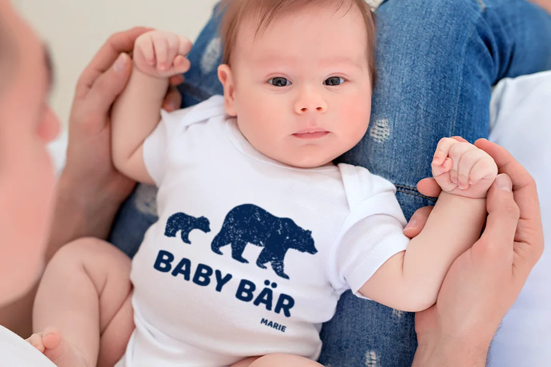 Der Sweater besteht aus 80% Baumwolle mit einer weichen Fleece-Innenseite, der Baby-Body aus 100% Baumwolle.