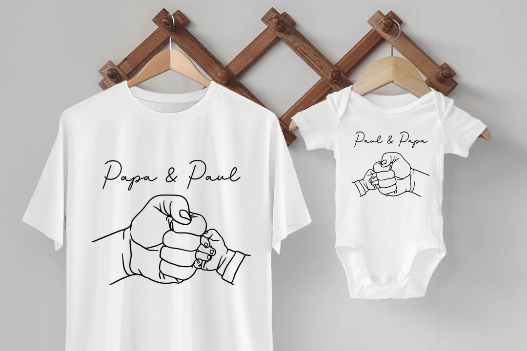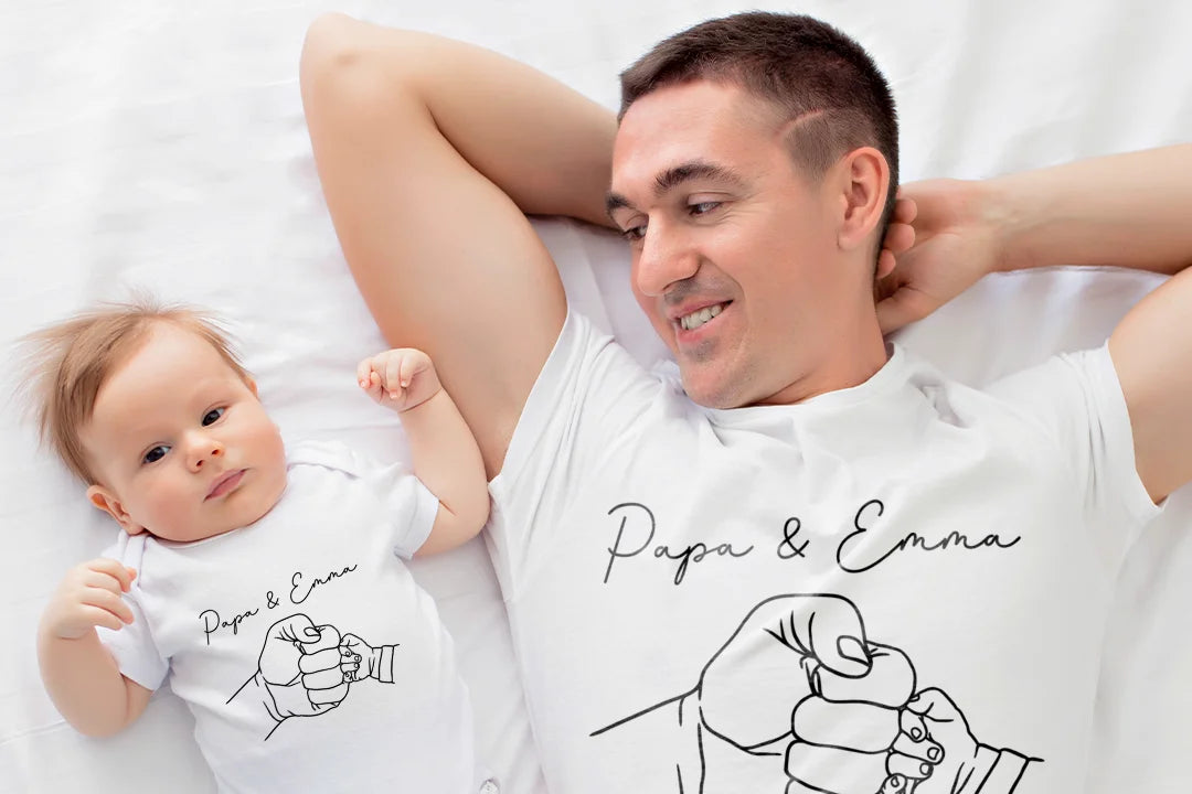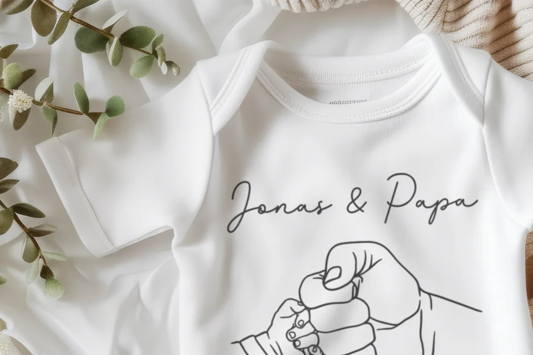 Ein liebevolles Set für Papa und Baby – mit persönlicher Namensgravur für unvergessliche Momente.