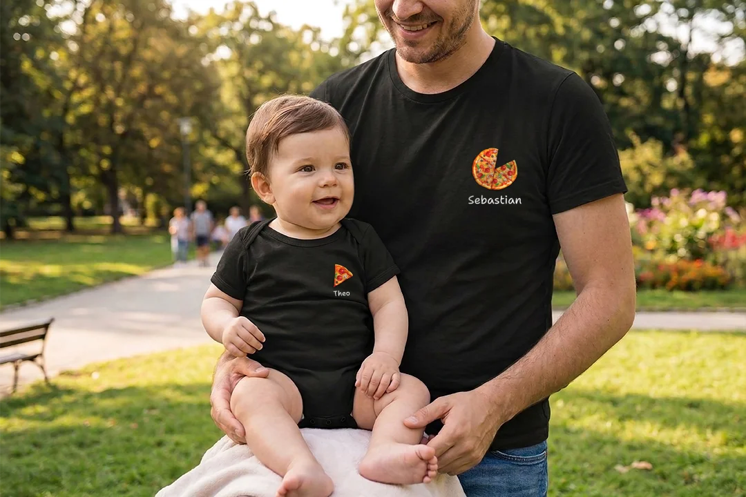 Regina Kahnwald und 777 andere Eltern lieben unseren Bestseller Partnerlook “Pizza