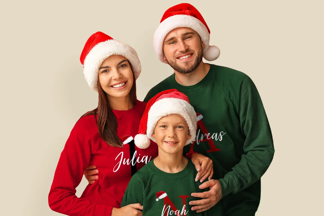 Festliche Weihnachtspullover mit Namen – ideal für die ganze Familie.