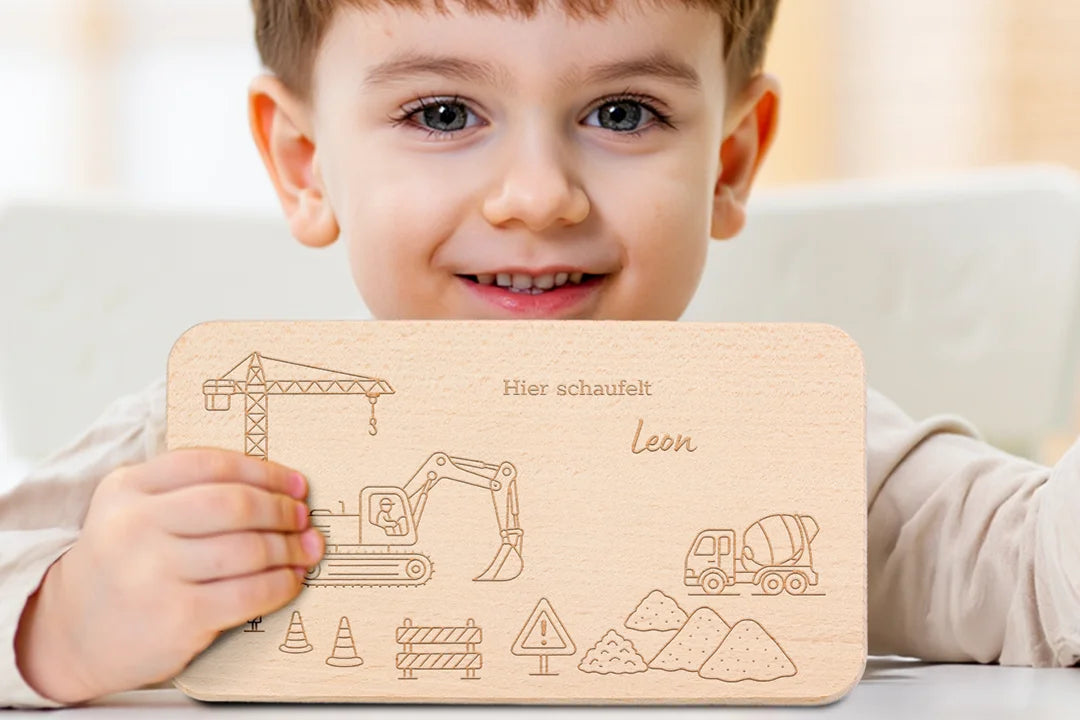 Individuell mit Namen graviert für kleine Baufans