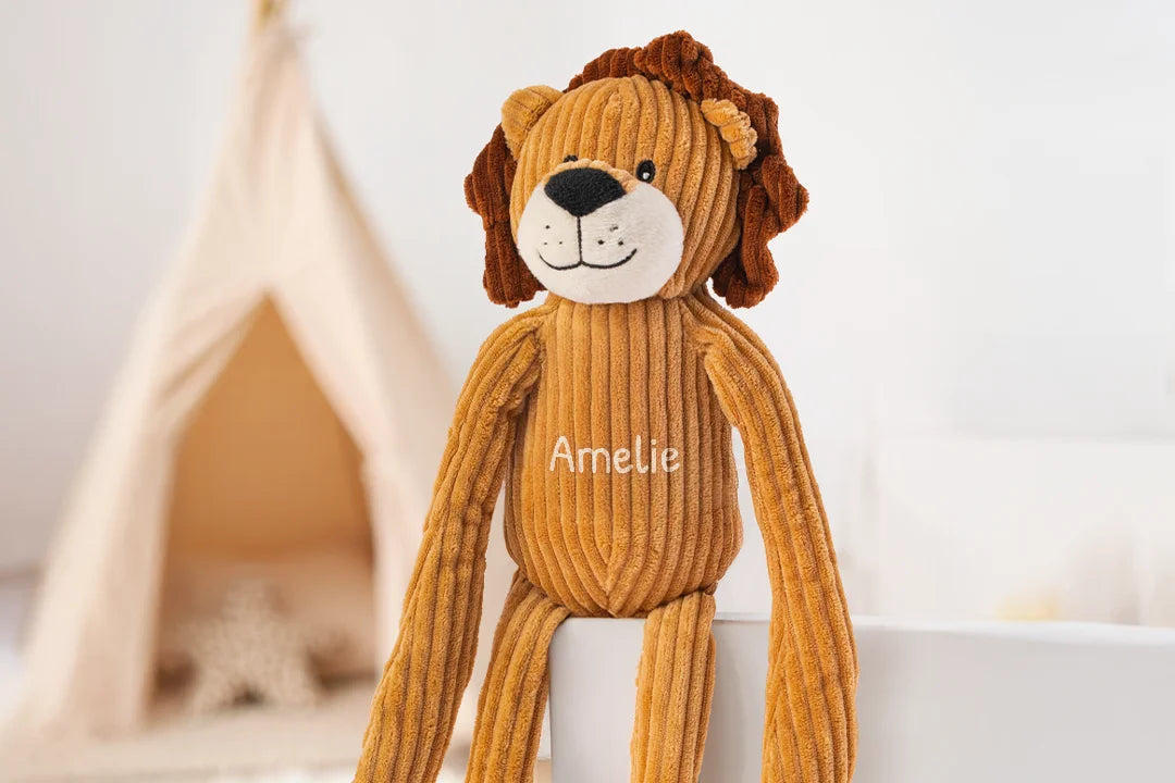 Weicher Löwenfreund mit deinem Wunschnamen – ideal zum Kuscheln, Trösten & Liebhaben.
