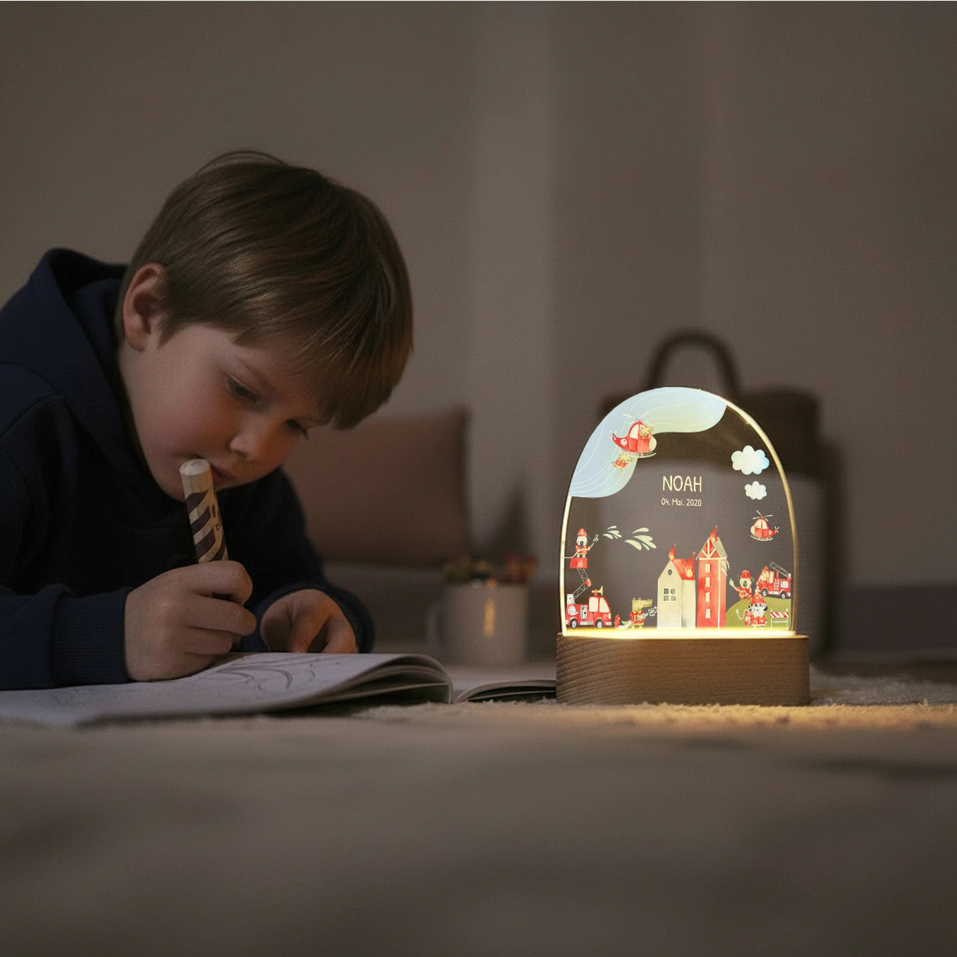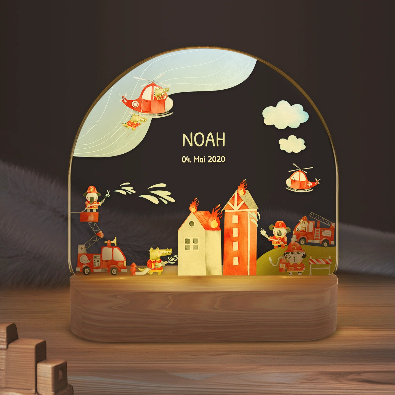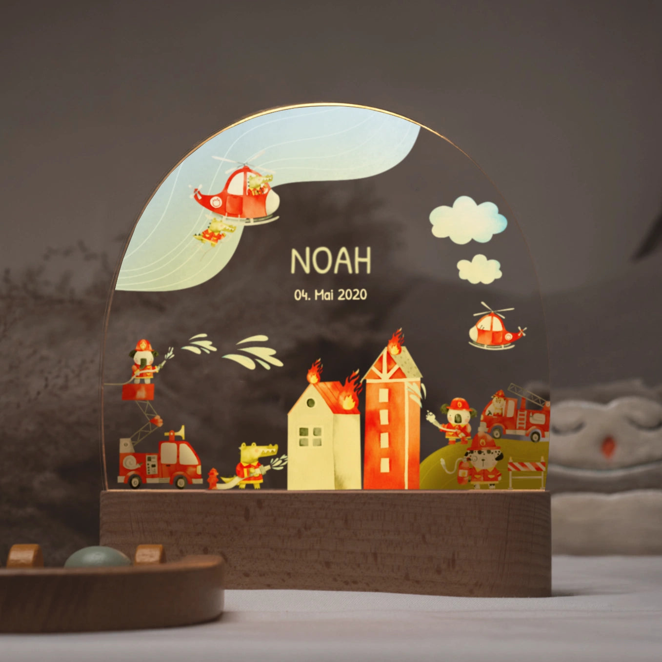 Personalisierbares Nachtlicht "Feuerwehr" - Ein funkelnder Begleiter für süße Träume