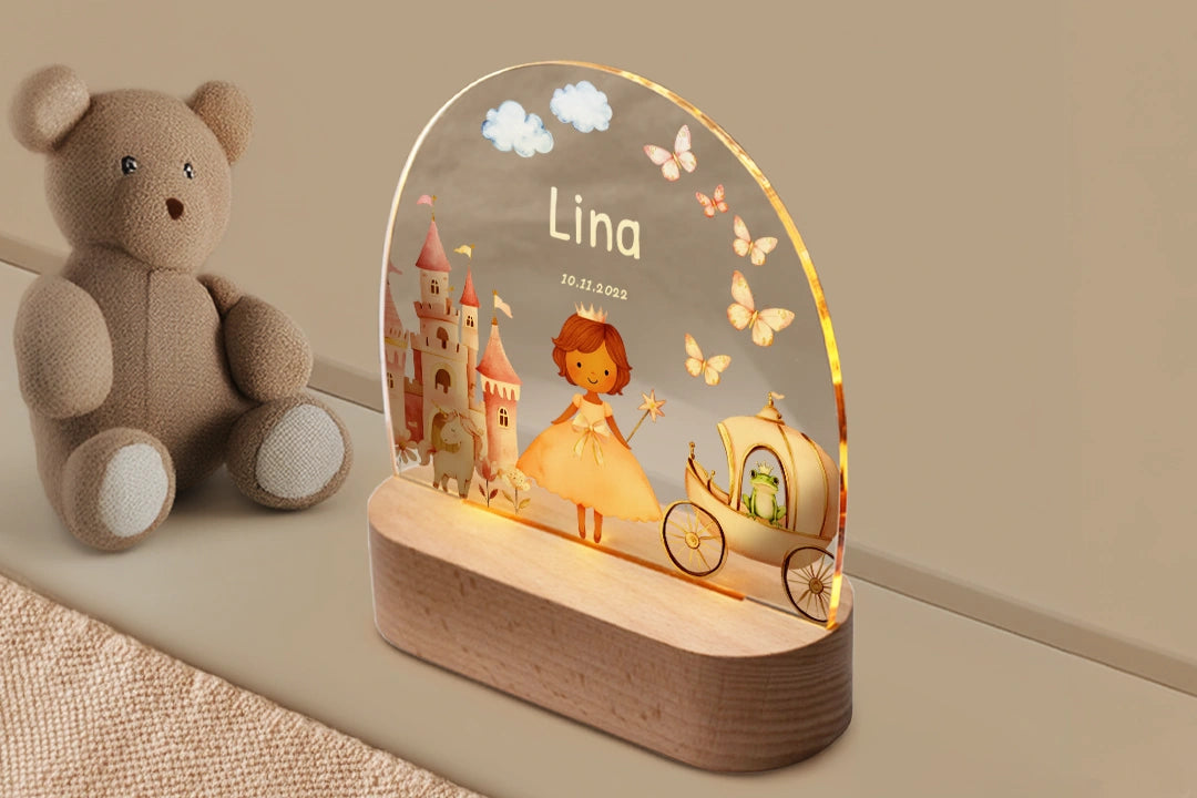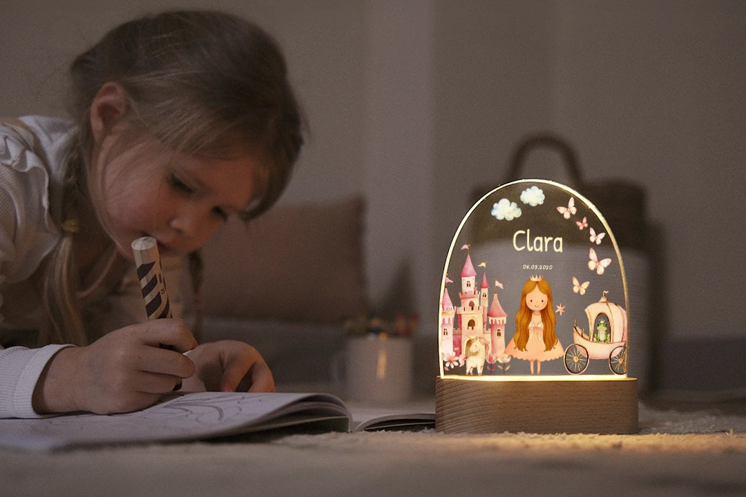 Zauberhaftes LED-Nachtlicht mit Namen – individuell gestaltbar für kleine Träumerinnen.