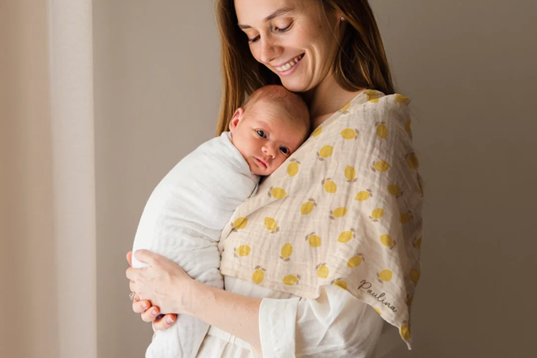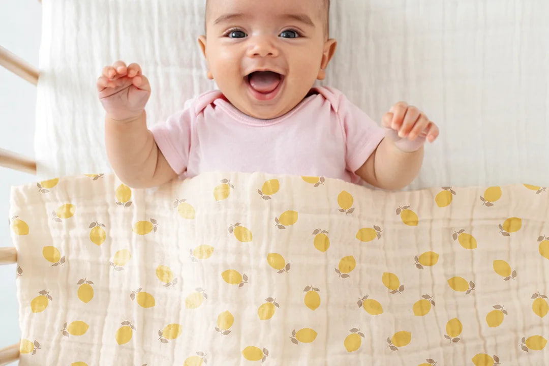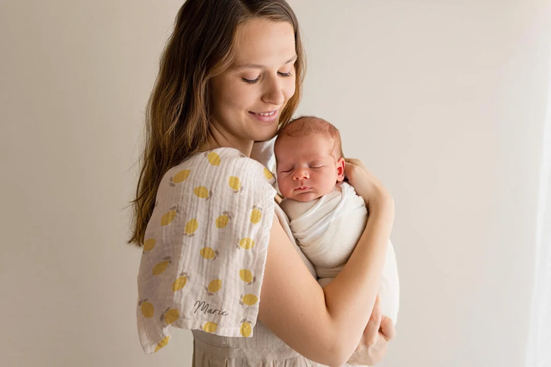 Zwei weiche Tücher im sonnigen Zitronen-Look – individuell mit Namen personalisierbar