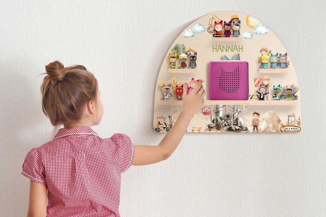 Das Regal bietet Platz für bis zu 15 Tonie-Figuren.