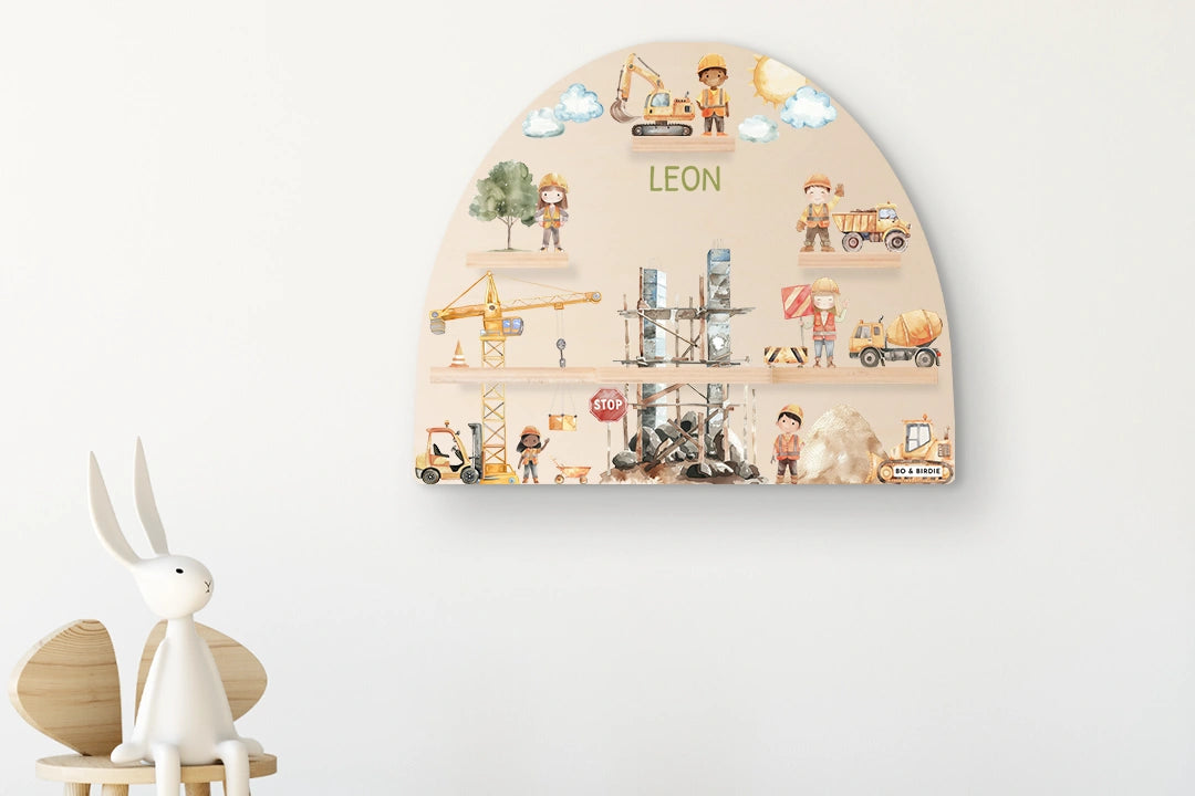 Praktisches und liebevoll gestaltetes Regal im Baustellen-Design