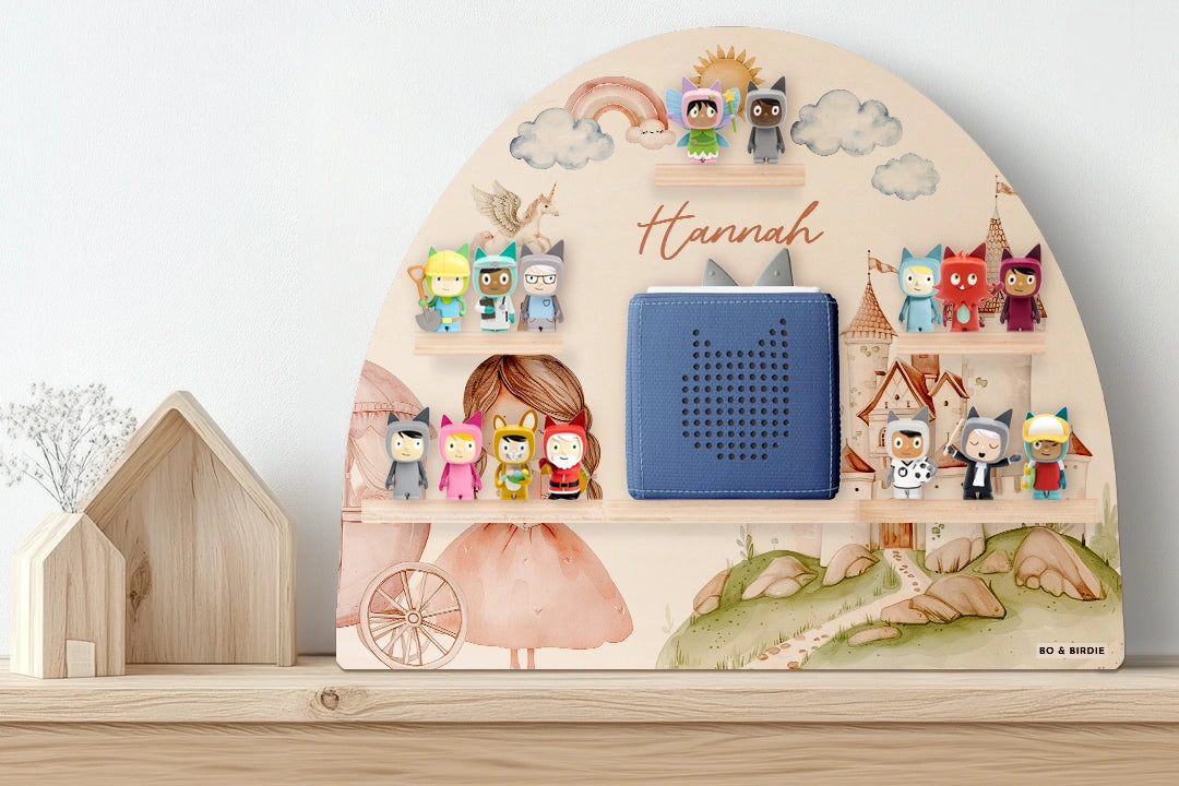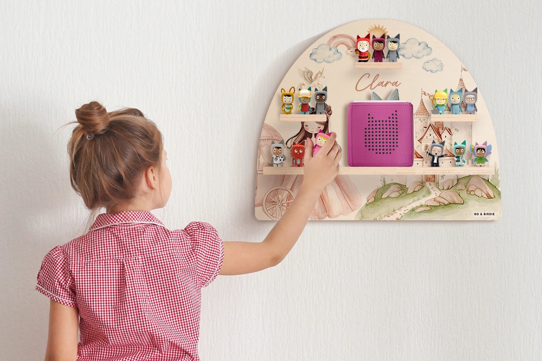 Zauberhaftes Regal für die Toniebox und Figuren – personalisiert mit dem Namen deines Kindes.