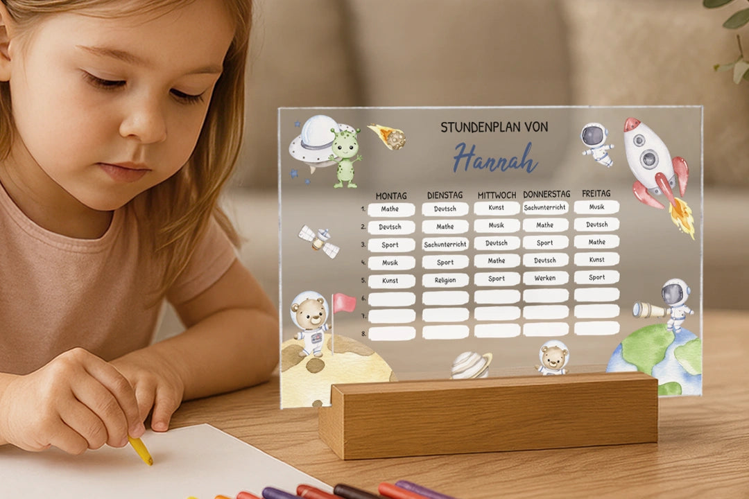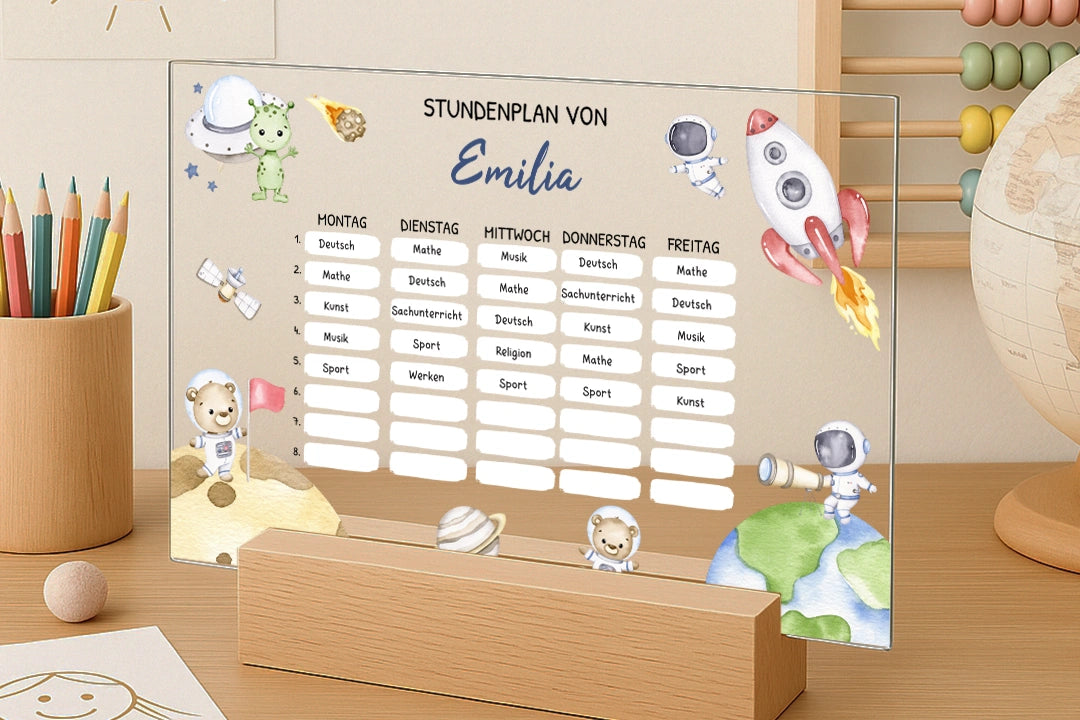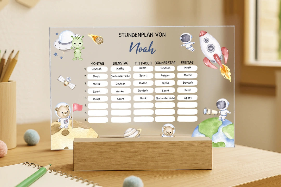 Mit Namen bedruckt & liebevoll im Weltall-Design – ideal zum Schulstart.
